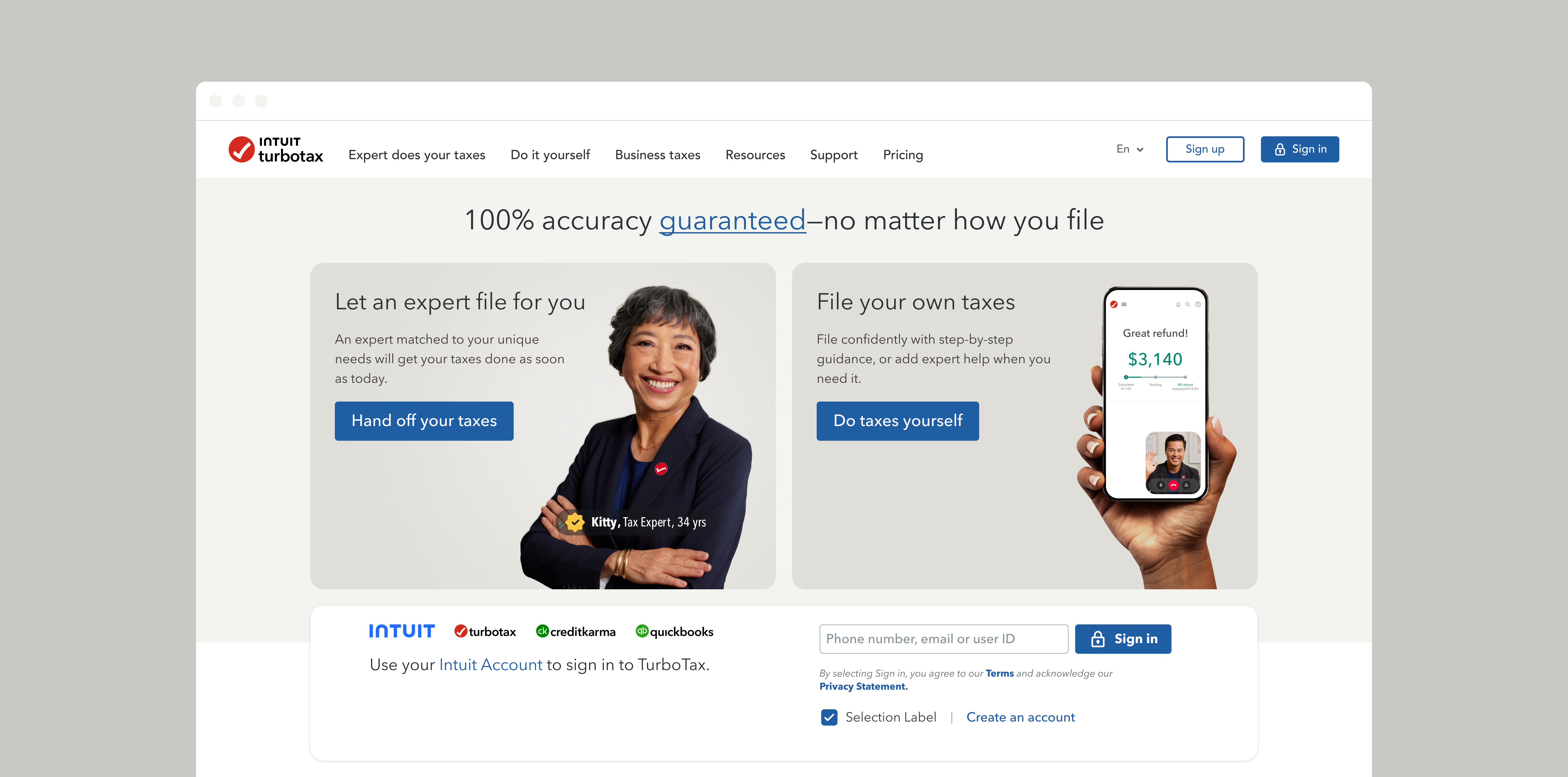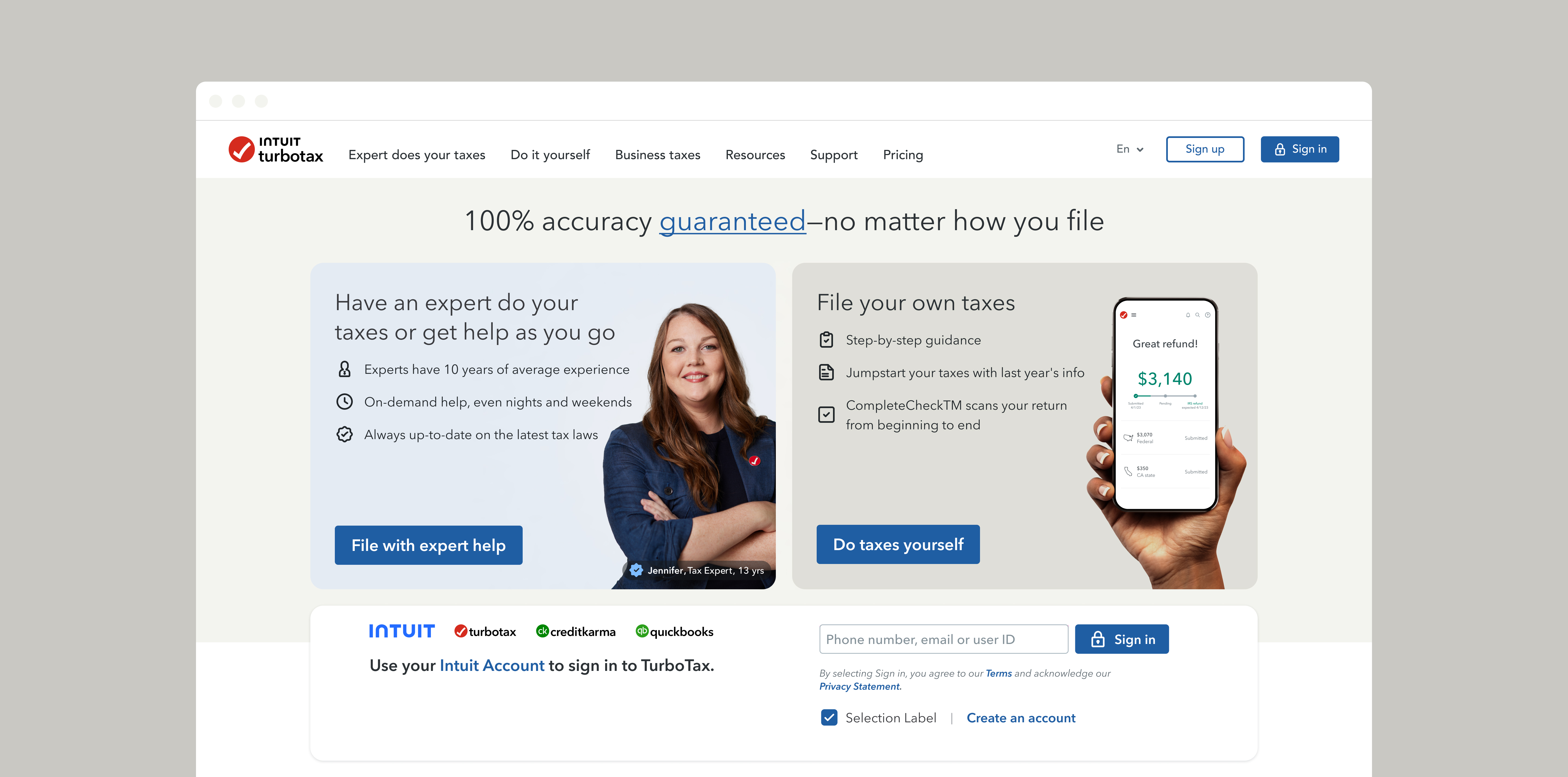 TurboTax stationary homepage design
