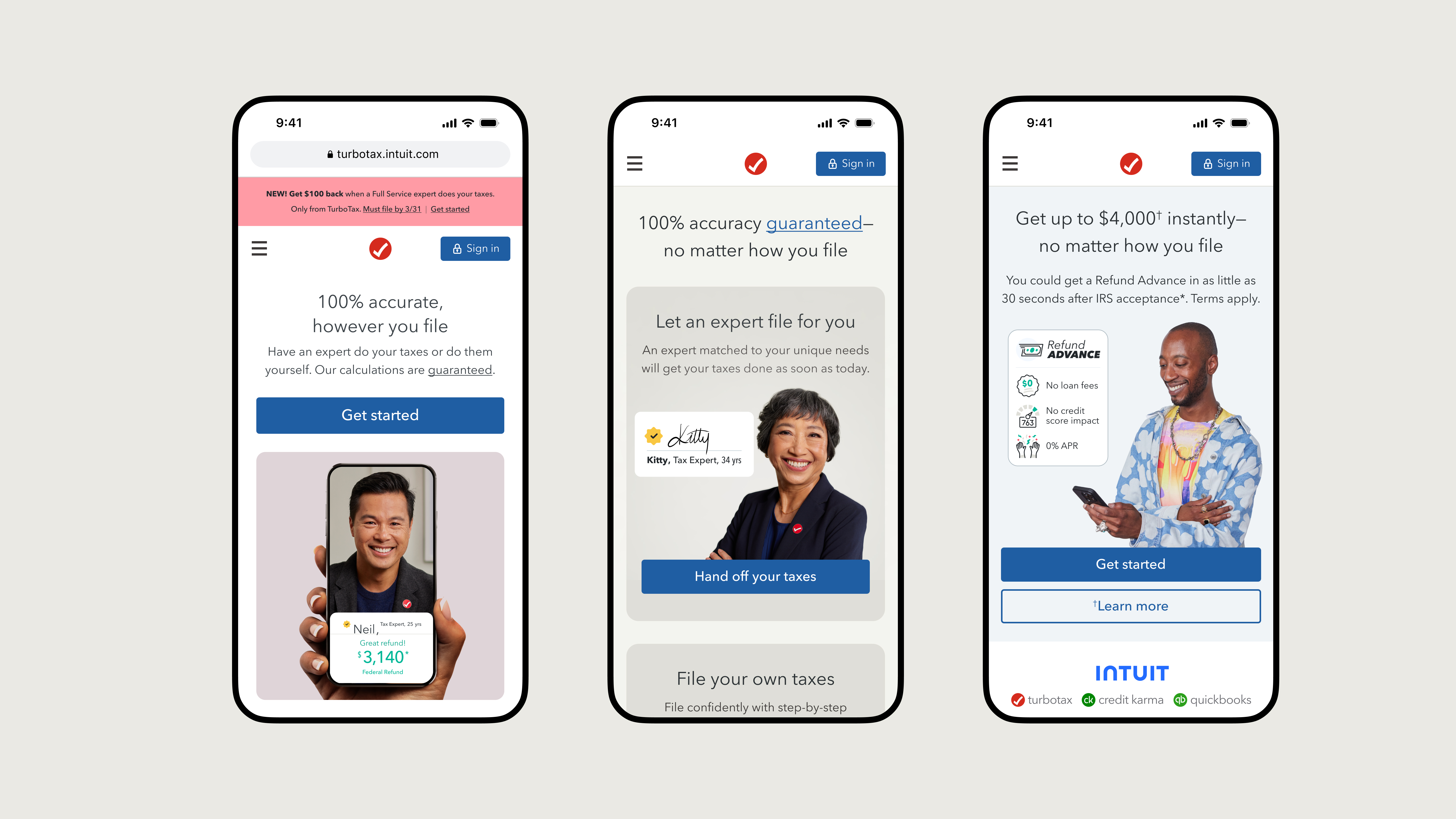 TurboTax mobile homepage designs